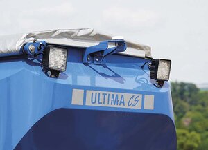 Damit bei Überlappungen, z.B. durch bestimmte Fahrgassenrhythmen oder am Feldrand, nicht zu viel Saat doppelt ausgesät wird, kann die Ultima CS mit einer Halbseitenabschaltung ausgerüstet werden. Hierbei werden die Ausläufe des Verteilerkopfes mit Stellklappen versehen, die dann bei Bedarf per Knopfdruck geschlossen werden können. Die Saatmenge wird dementsprechend angepasst. Eine Halbseitenschaltung ist auch über Section Control möglich.