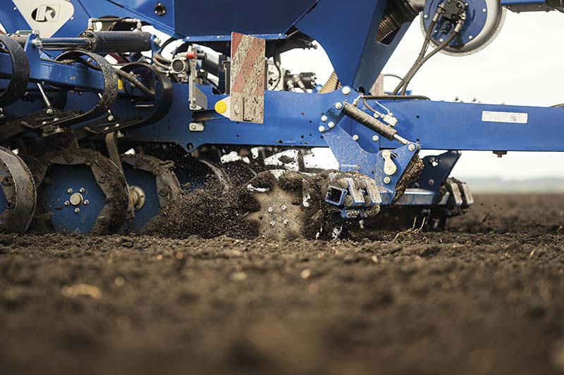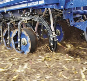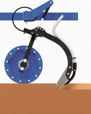 Der Säzinken ist das zentrale Element der Ultima CS, er wird von der robusten Tastrolle präzise in der Arbeitstiefe geführt. Die Ablagetiefe des Saatgutes wird hierbei sehr komfortabel hydraulisch eingestellt. Wird Druck auf das Säelement gegeben, dann erhöht sich die Ablagetiefe. Wird mit weniger Druck im System gefahren, dann arbeitet die Ultima CS mit geringerer Ablagetiefe. Die Arbeitstiefe kann stufenlos und sehr präzise eingestellt werden.