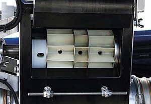 Das Dosiergerät dichtet den Luftstrom zum Tank ab, daher ist weder ein Injektor noch ein Drucktank nötig. Die Zellräder verbleiben im Dosiergerät und werden mit Hilfe einer Madenschraube aktiviert, die als Mitnehmer fungiert. Durch das Reduziergehäuse wird mit einem kleineren Zellrad z. B. Raps ausgebracht.