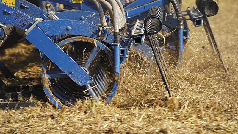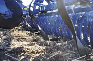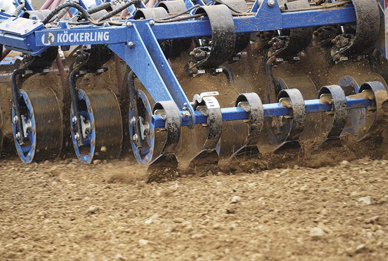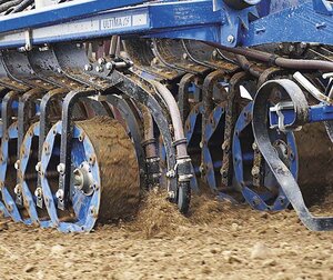 Der Wellscheibenspurlockerer ist in erster Linie für die Mulch- und Pflugsaat konzipiert. Die vier Wellscheiben pro Seite können auf die Spur des Schleppers angepasst werden und lockern die Verdichtung vor dem Zinkenfeld wieder auf. Die Eingriffsintensität kann in fünf verschiedenen Stufen eingestellt werden. Die Funktionsweise der Wellscheiben sorgt dafür, dass keine Erde aus den Fahrspuren des Traktors gearbeitet wird.