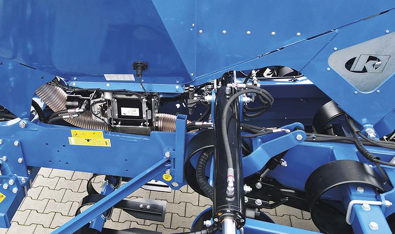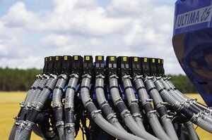 Es ist bei allen Modellen der Ultima CS möglich, einen zweiten Hydraulikkreislauf für die Tiefeneinstellung in der Maschine zu montieren. Dieser dient dazu, in der Fahrspur des Traktors mehr Druck auf die Säeinheiten zu bringen und dadurch das Saatgut einsatzsicher in der richtigen Tiefe abzulegen.
