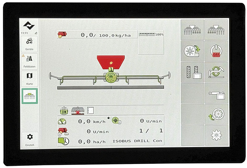 - Effiziente Steuerung: Präzise Steuerung der Drillmaschinen für eine gleichmäßige Aussaat, höhere Flächenleistung und geringeren Saatgutverbrauch